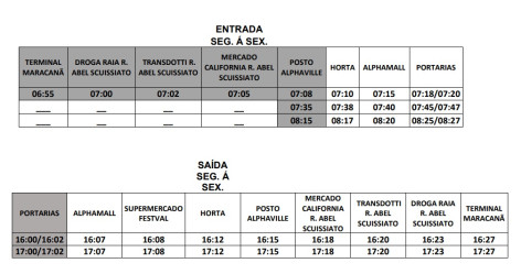 Horário do itinerário