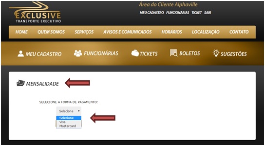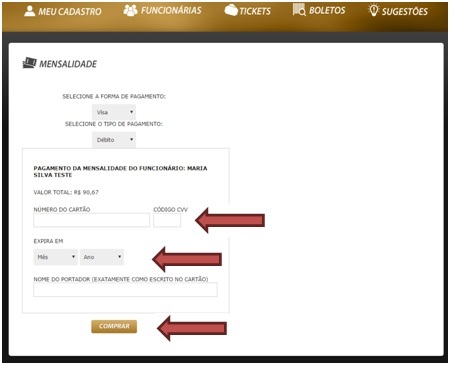 - Após cadastrar a funcionaria MENSALISTA e finalizar o cadastro o site irá direcionar direto para pagina de pagamento da mensalidade.