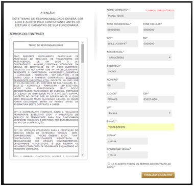 - Após preencher todas as informações é preciso clicar na opção “LI E ACEITO TODOS OS TERMOS DO CONTRATO AO LADO”e após clicar nessa opção é só “FINALIZAR CADASTRO”.